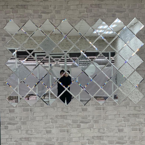 Использована зеркальная квадратная плитка с фацетом.